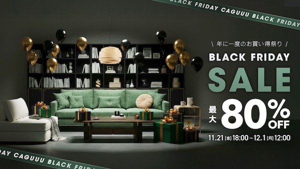 CAGUUU公式サイトは11月21日から12月1日12:00まで最大80%OFFブラックフライデーセールを開催しています!お得な機会をお見逃しなく!!